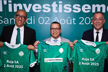 Paraphée par le président du Raja Club Athletic, Jawad Ziyat, et le président de l’Association Ports4Impact, Driss Agoujjim, la convention acte l’activation de Raja S.A. avec un capital de 250 millions de dirhams (MDH), détenu à 60% par Ports4Impact via un investissement de 150 MDH, et à 40% par l’Association Raja Club Athletic grâce à un apport de 100 MDH représentant les équipes sportives et la marque.